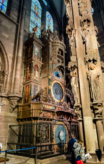 Our first stop was the Strasbourg Cathedral (Notre-Dame de Strasbourg), and it ended up being the most breathtaking cathedral we experienced on the entire trip — and that’s saying something considering we’d already visited York Minster, Westminster Abbey, and Notre Dame in Paris. The stained glass was incredible, and the astronomical clock was one of the coolest things we saw in any church. The cathedral is a UNESCO World Heritage Site and has a ton of World War history tied to it, including a memorial to U.S. soldiers, which was such a meaningful surprise.