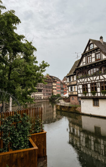 The morning after Disneyland, we packed up again and hopped on the high-speed train to Strasbourg, and from the second we arrived, I knew this was going to be one of my favorite stops. The ride itself was about two and a half hours at nearly 180 mph — smooth, quiet, and honestly a welcome change after the chaos of Paris. Strasbourg sits right on the border of France and Germany and is the capital of the Alsace region, and it truly feels like a blend of both cultures in the prettiest way.