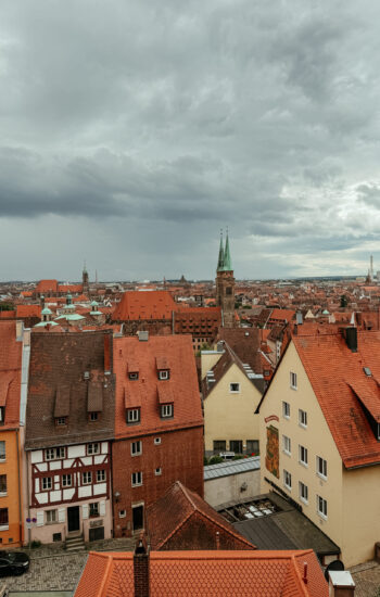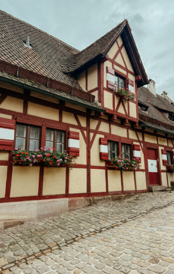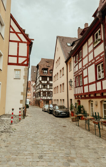 After leaving Dachau, we fought some of the worst traffic we’d hit in Munich and then continued our drive north to Nuremberg, where we’d spend our last full day of sightseeing. Our hotel was right along the old city walls, so after dropping off our bags, we walked around a bit to get a feel for the area. It’s such a charming city — colorful buildings, medieval architecture, and winding streets that lead you right into the heart of Old Town.
