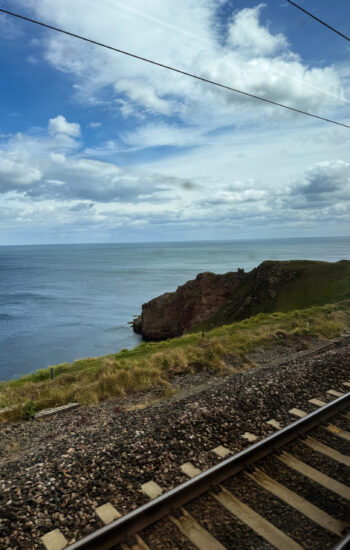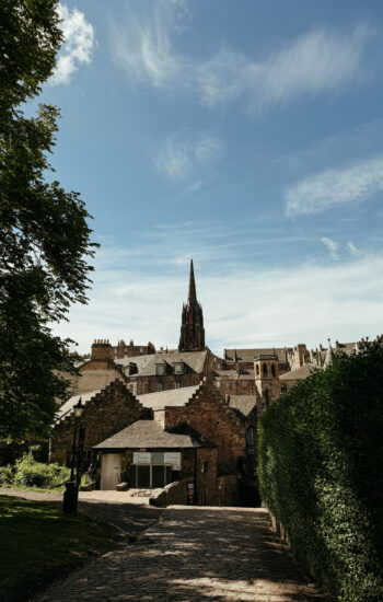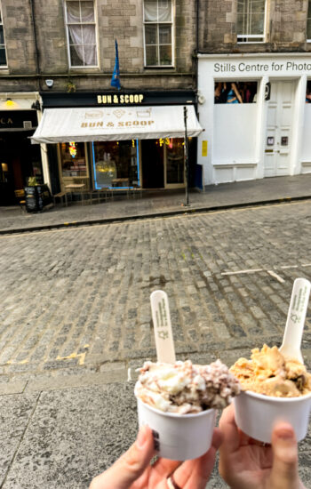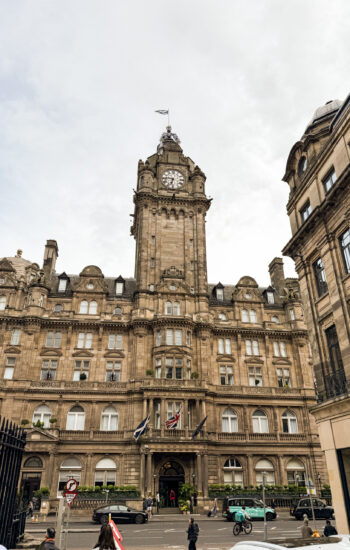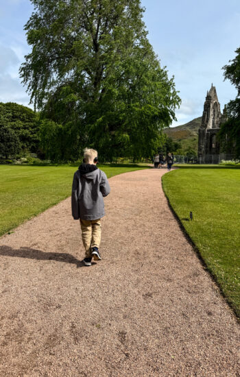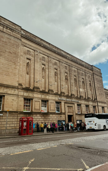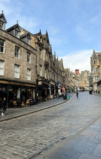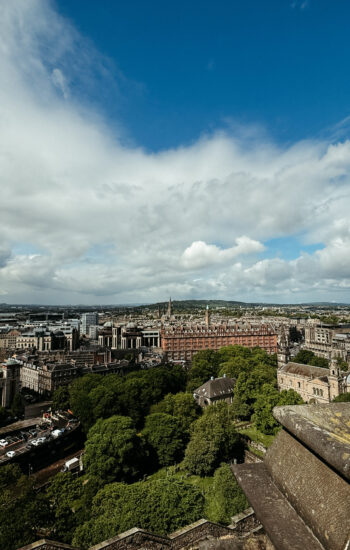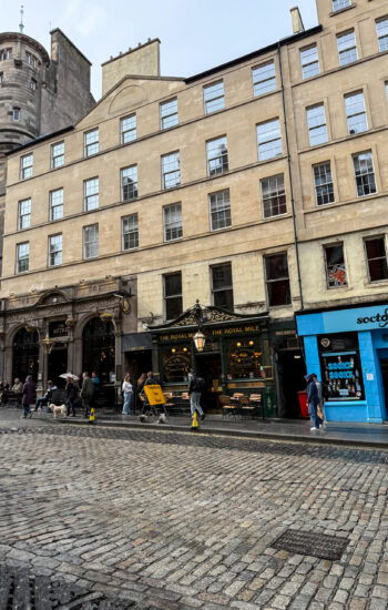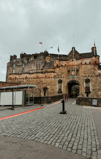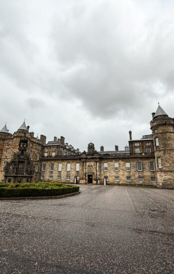 The next morning, we packed up and caught the train from York to Edinburgh, which turned out to be one of the most beautiful train rides of the entire trip. Rolling hills, tiny villages, and stretches of coastline made the two-and-a-half-hour trip fly by. After checking into our hotel, we dropped our bags and walked down to the Palace of Holyroodhouse, where the Royal Family stays when they’re conducting business in Scotland. Standing at the end of the Royal Mile, it was wild to think we were actually walking through a place that’s still used by the royals today.